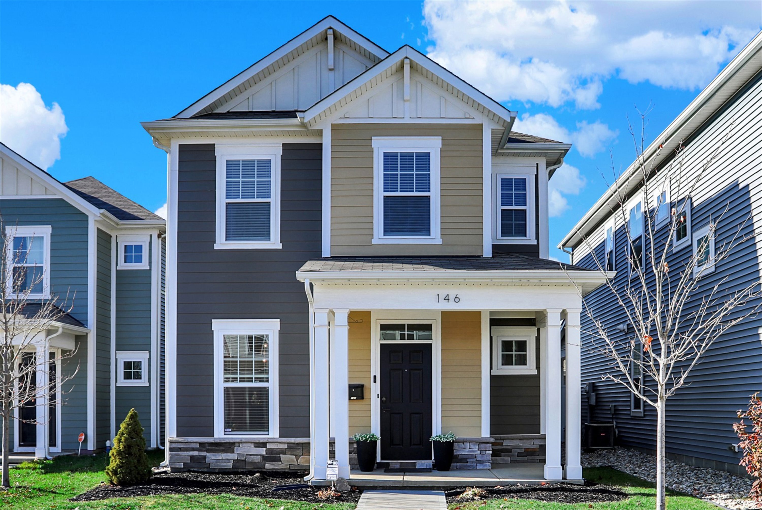 Introducing 58/Bahr at Central State! This exquisite residence invites you into a culinary haven with a gourmet kitchen boasting a gas range, double ovens, a walk-in pantry, and a sprawling quartz island featuring a waterfall edge and extra storage. The cozy living room, complete with an electric fireplace, provides warmth and ambiance. The spacious master bedroom includes a generously sized walk-in closet and an ensuite bath with comfort-height marble counters. The second floor hosts the convenient laundry and a versatile loft, currently utilized as an office but easily convertible into a third bedroom if desired. The fully fenced backyard areas offer both privacy and outdoor enjoyment. Ideally situated just 10 minutes from Lucas Oil, Mass Ave, and the Indianapolis Motor Speedway, this home also provides easy access to local amenities such as the Mansion Society Coffee Shop, Central Greens Sports Complex, and the upcoming B&O Trail. Live in luxury and convenience!