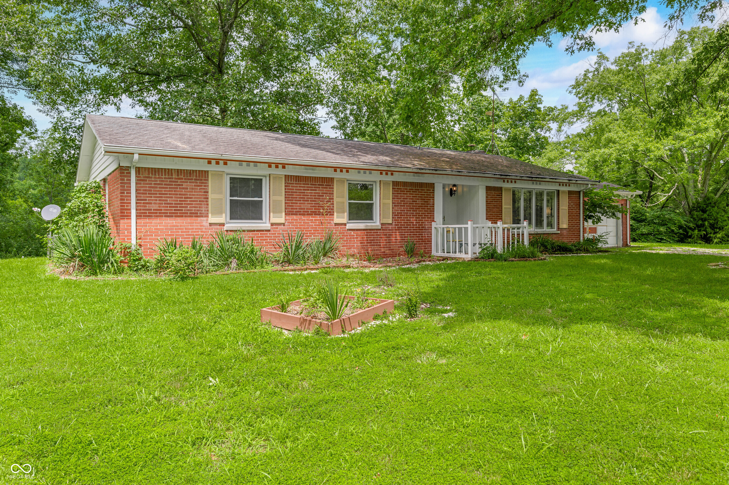 "Away From It All" - Zoned as a tourist home and being sold turnkey with furnishings and housewares, this mid-century modern single-story brick ranch blends comfort, character, and nature on a nearly 3 acre lot. Inside you will find 3 bedrooms and 2 full bathrooms across 1,436 square feet of inviting living space. The cozy family/dining room features a fireplace as its centerpiece and provides access to the large rear deck. The kitchen includes shaker-style cabinets, and a functional peninsula ideal for cooking, entertaining, or casual meals. The living room and bedrooms offer original oak floors. Outside, the property truly shines with its array of features designed for relaxation and enjoyment of the natural surroundings; imagine spending afternoons on the deck, or relaxing in the hot tub. The outdoor dining area provides a perfect setting for meals, all framed by a picturesque lawn with majestic mature trees, views of the surrounding woods, while the pergola offers a shaded retreat. The horseshoe pit and basketball goal make for a great setting to have some friendly competition. The 2-car garage can be used as a place for entertaining with a foosball table, air hockey, and a setting for checkers or chess. A shed with electricity provides practical storage solutions. Situated on a quiet county road just down the street from John Mellencamp's renowned Belmont Studio. The property is just minutes from Brown County State Park, Yellowwood State Forest, Monroe Reservoir, the Town of Nashville, and the city of Bloomington. Built in 1962, this home offers the perfect balance of rustic charm and modern comfort-ideal for full-time living or a tranquil getaway.