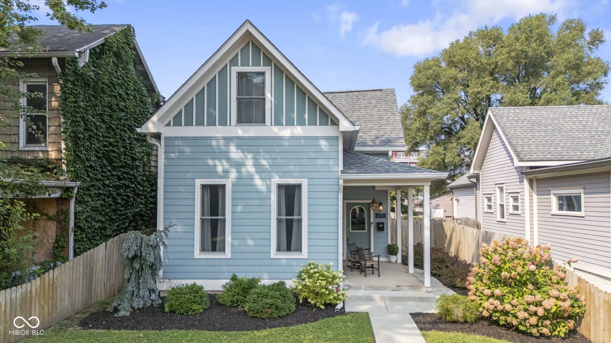 REIMAGINED FOUNTAIN SQUARE BEAUTY. Originally built in 1910 and thoughtfully reimagined in 2017 By HGTV's Good Bones, this two-story home blends historic charm with modern design and convenience. A welcoming front porch, charming picket fence, and private side patio sets the tone for the warmth of this home. Inside, you'll find laminated hardwood floors, tall windows, classic trim work, and stylish finishes. The open-concept main level is designed for entertaining and family, featuring a spacious living room, large dining area, and a chef's kitchen with bar seating-perfectly balancing function and beauty. The main-level primary suite offers a walk-in closet and private ensuite bath for everyday comfort and convenience. The upper level contains a loft, three (3) generously sized bedrooms and a large hall bath, offering plenty of room for family and guests. With 4 bedrooms, 2.5 bathrooms, and a detached 2-car garage, this home delivers the ideal combination of historic character, modern updates, and urban living in one of Indianapolis' most vibrant neighborhoods.