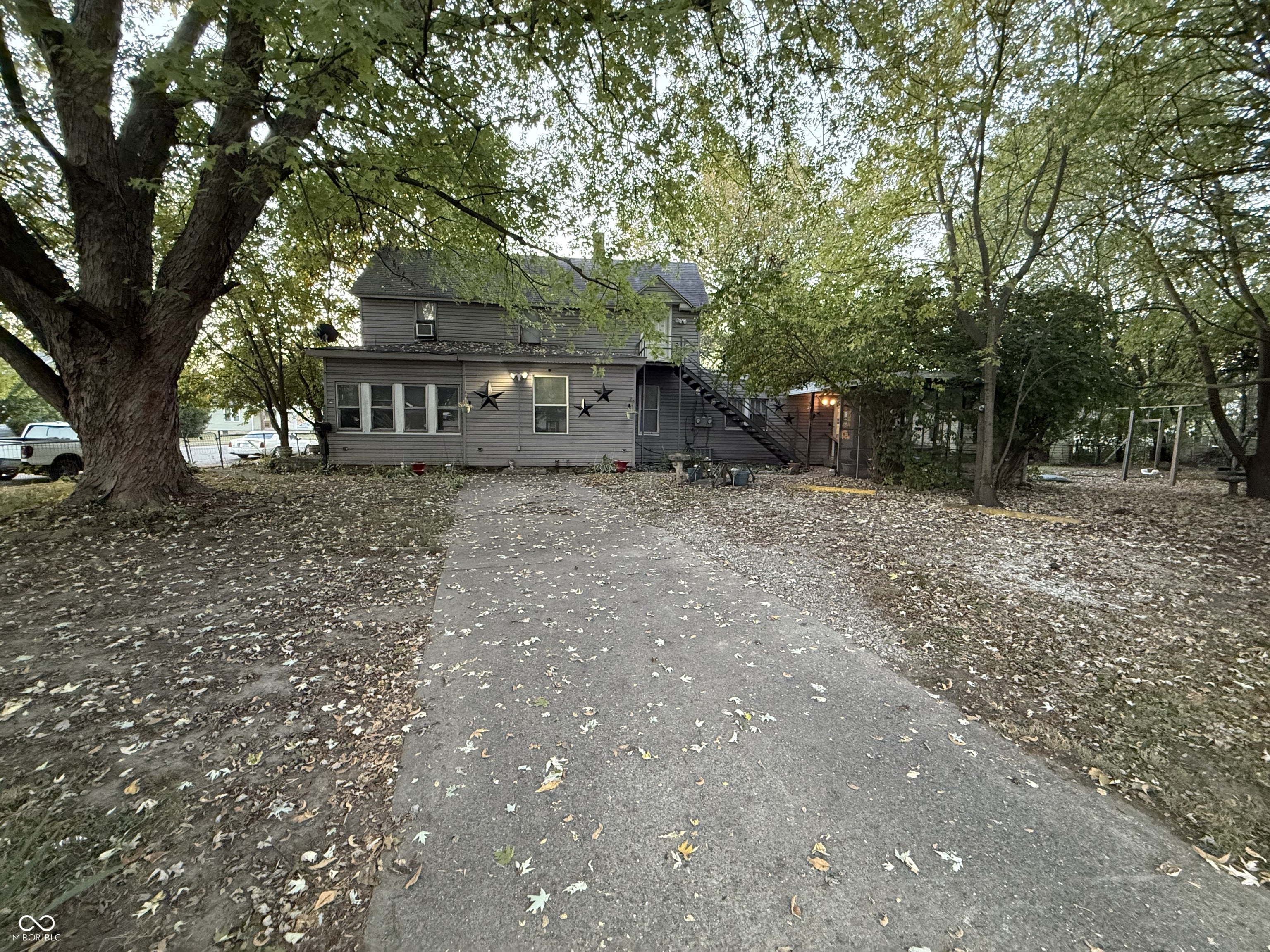 Opportunity awaits in this 3-bedroom, 2 full bath home situated on a large corner lot on 0.26 acres. A fully remodeled kitchen that includes all the appliances with recessed lighting and under the cabinet lighting. The dining area has an electric fireplace. Downstairs you have a large laundry room, kitchen, dining, living room, 1 bedroom and an enclosed sunroom/front porch. Did I mention the upstairs is on its own electric meter and this home used to be a duplex? Just shut the door and this home is easily turned back into a duplex with no needed work. Upstairs has a full kitchen, bath and 2 bedrooms. The roof is around 10 years of age and HVAC less than 10. Updated electrical throughout. Home is on 2 eclectic meters with the garage being able to be on its own also. Outside you have a parklike setting with lots of mature trees for shad and privacy. There is a screened in porch, off street parking on your concrete drive and the best of all a 36x35 garage with 3 overhead garage doors. Great for a workshop, automobile repair, storage or housing your car collection. Plenty of room for 6-8 cars. Motivated seller so come and check out this single or multi family home.