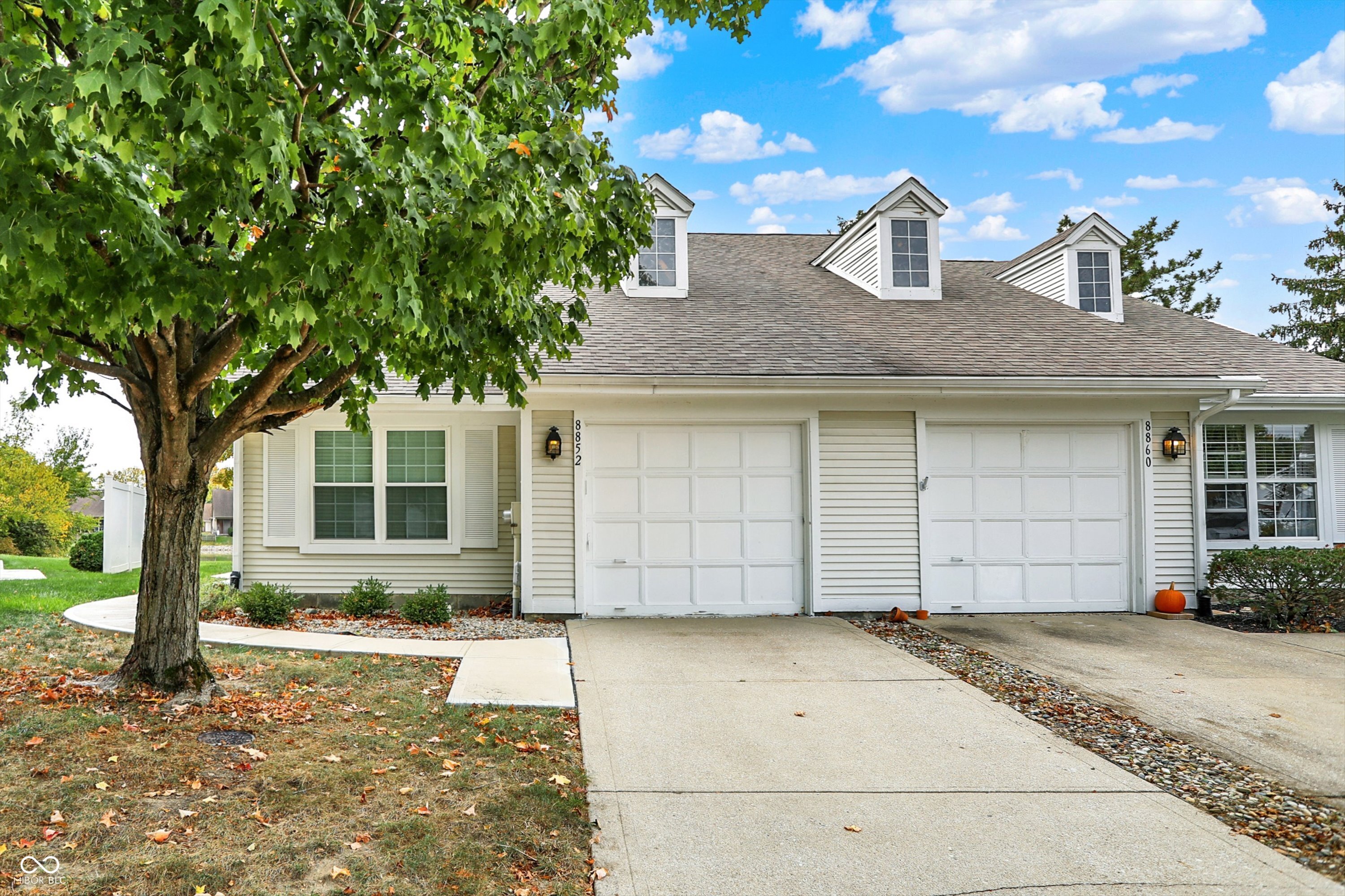 Nestled at 8852 Lahr CT in Indianapolis, Indiana, this 3-bedroom, 2-bathroom delightful single-family residence with common wall offers a turn-key opportunity in a very desirable area. The sunny, cheerful living room offers a welcoming space, enhanced by a vaulted ceiling that amplifies the sense of openness and light, while the fireplace provides a cozy focal point, perfect for relaxation and gatherings. Neutral decor and colors throughout. Shaker cabinets in updated kitchen add a touch of elegance and durability, making this kitchen both beautiful and functional. The primary bedroom serves as a private retreat, featuring an updated ensuite bathroom for added convenience and privacy. A walk-in closet offers generous storage space for organization and ease in your daily routine. This property boasts an open floor plan and high ceilings that enhance the feeling of spaciousness throughout the 1206 square feet of living area. The enclosed porch offers a tranquil space to enjoy the water view, bringing the beauty of the waterfront property inside. Roof, windows and sidewalk were replaced in 2024, with all new appliances in 2017. Homeowner has access to pool, tennis courts, clubhouse and gym. The water view must be seen to fully appreciate! Conveniently located close to all the shops and restaurants Castleton, Keystone, and Fishers offers. Hurry, this will not last!