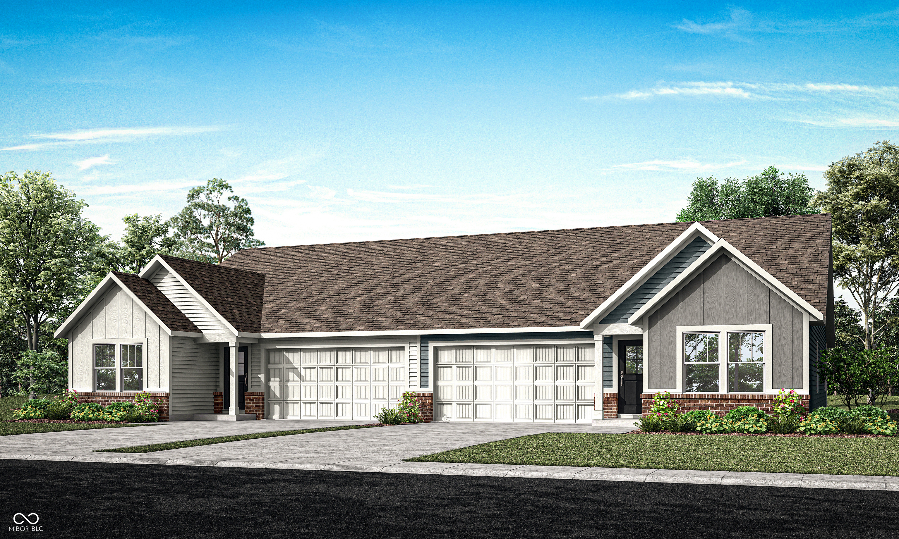The Carriage Duplex collection offers new duplex-style homes for sale at a great value, to the Beyer Estates masterplan in Fortville, IN. Built to inspire outdoor living, this community offers over 10 acres of common space, featuring trails, a central park, playground and picnic shelter. Situated near vibrant Indianapolis, Fortville provides a serene Midwestern atmosphere with close proximity to excellent recreation sites and upscale shopping at Hamilton Town Center. Flat Fork Creek Park and Geist Reservoir offer year-round activities like hiking, mountain biking, kayaking, fishing and boating. This new home design is laid out on a single level, offering ease of living and ample space for both relaxation and entertainment. The expansive Great Room serves as the heart of the home, seamlessly connecting to a modern kitchen and airy dining area. At one end is the large owner's suite with an attached bathroom, while two secondary bedrooms sit at the opposite end. Rounding out the space is a versatile two-car garage. *Photos/Tour of model may show features not selected in home.